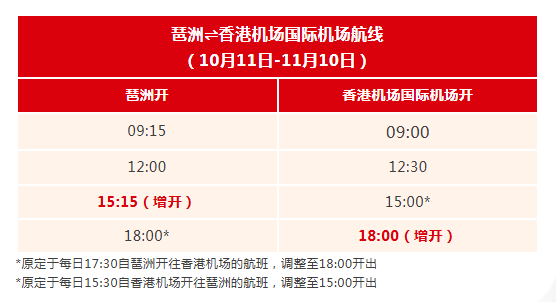 作为全国单一会展口岸,为方便客商和市民出行,琶洲港澳客轮码头将于10月11日至11月10日增开往返香港机场的夜间航班,将“三进三出”增至“四进四出”,通关时间21时30分。