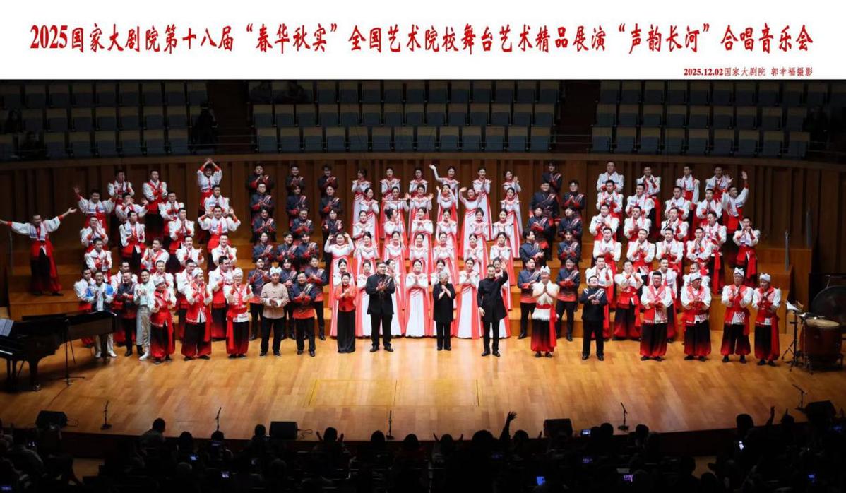 12月2日晚,宁夏师范大学“凌锐之声”合唱团在2025年国家大剧院第十八届“春秋硕果”全国艺术院校舞台艺术展上以“声音的河流”专题合唱音乐会的形式举行。